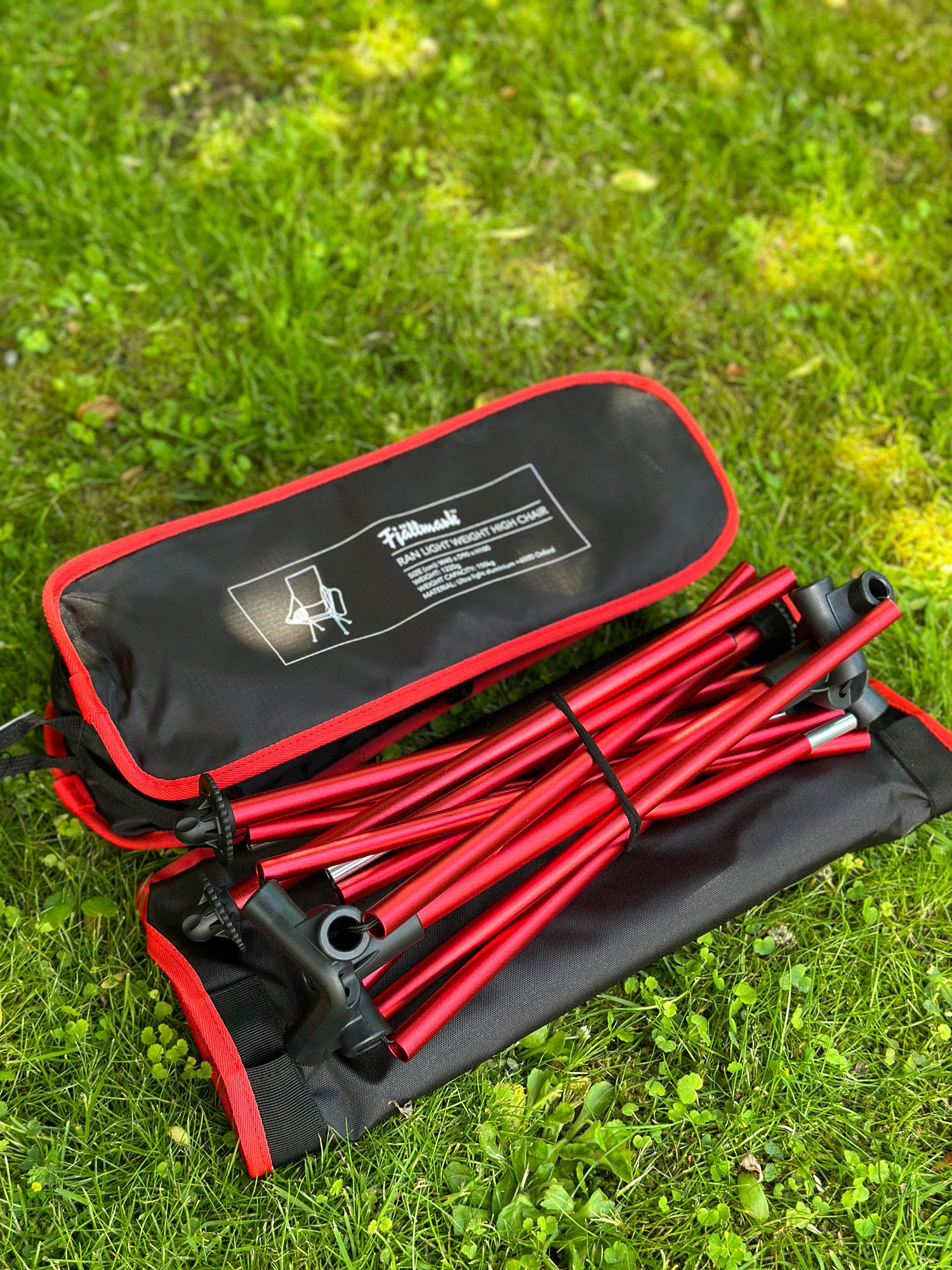 Stolen levereras i en liten väska som gör den lätt att bära med sig. Benen sätts snabbt ihop, utan några verktyg. Fötterna har runda tassar för att stolen inte ska sjunka ner i marken.
